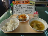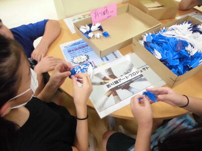 学校の門を入っていただき、校舎横の自転車小屋に、アルミ缶の回収袋を設置しています。