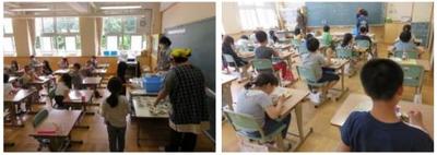 ・給食準備は、自分で取りに行くセルフサービス方式を取り入れています。
