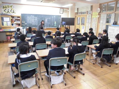 1月16日(金)6年生が青葉中学校で同級生になる4小学校の仲間と体験授業を受けました。