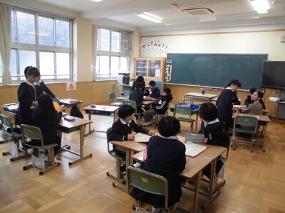 各教室では、3学期に頑張りたいことを書いたり、班や係の役割について話し合ったりしました。