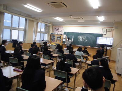 始めに、生徒会からの学校紹介を聞き、教科に分かれて授業を受けました。