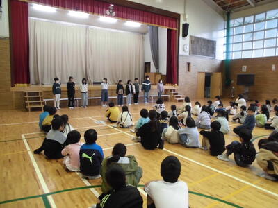 わくわく集会 投稿: 学校管理者 (10:27) 11月5日(水)後期児童会本部・委員会の初めてのわくわく集会です。 本部からは、「無限必勝」という後期のテーマが発表されました。笑顔溢れる三笠小学校を目指します。 体育委員会からは、全校ダンスの紹介です。図書委員会からは本のスタンプラリーの取組、放送委員会からは放送内容を工夫するので、しっかり聞いてくださいと呼びかけがありました。 後期委員会も動き出しました。様々な取組が楽しみです。 Tweet -
