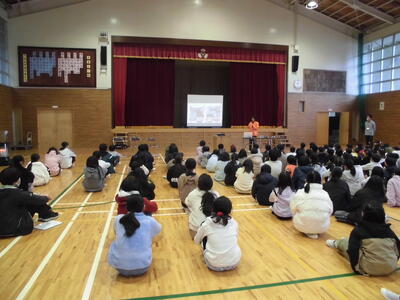 「ふわふわことばとちくちくことば」の読み聞かせでは、言葉づかい一つで友達が嫌になったり嬉しくなったりするので、言葉づかいに気を付けて生活してほしいとお話しいただきました。