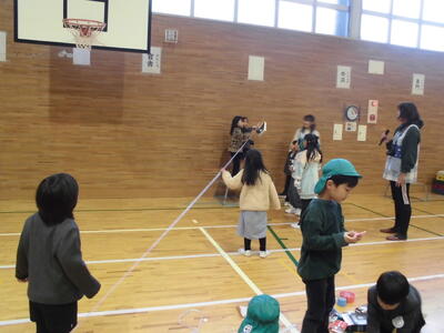 11月26日(水)1年生が、橘幼稚園とうみべのもりこども園の5歳児さんと一緒に、連携活動をしました。