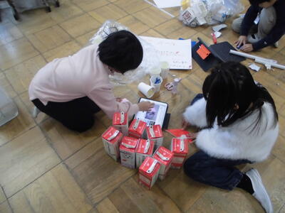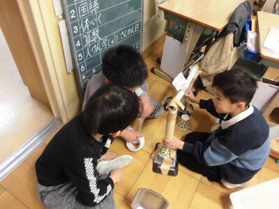 世界にひとつのおもちゃ 投稿: 学校管理者 (12:07) 12月4日(木)2年生が生活科の学習で、動くおもちゃを作っています。 風やゴムの力を使って、どうしたらよく動くおもちゃができるか、発想豊かに作成していました。 1年生を招待して、おもちゃランドを開く予定で、景品づくりも頑張っています。 どんなランドになるのか、とても楽しみです! Tweet -