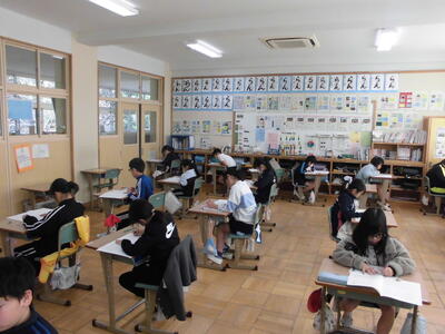 全校学力テスト 投稿: 学校管理者 (12/08) 12月8日(月)、今日は全校学力テスト(国語)を行いました。今年度の学力がどの程度身に付いたかを知り、今後の復習などの学習に活かすためです。どの学年も真剣に取り組みました。 Tweet -