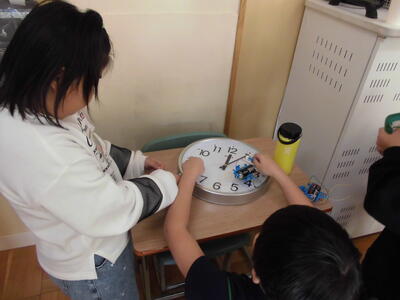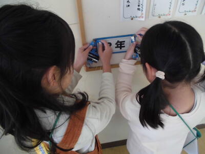 明かりをつけよう 投稿: 学校管理者 (12/10) 12月10日(水)3年生が理科の学習で、電気を通すものを予想し、実験しました。 回路の一部に何をはさむと、豆電球に明かりがつくかな? 階段の手すり、教室の時計、画鋲などなど、子どもたちなりに予想して試しました。 この後、明かりがつくものとつかないものに分けて、規則性を見つけます。 楽しく実験していました。 Tweet -