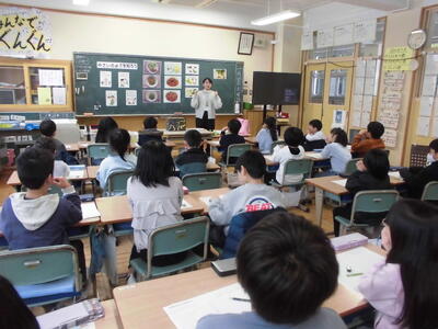 野菜のよさを知ろう 投稿: 学校管理者 (14:42) 1月27日(火)給食週間中、栄養士の先生による栄養指導を行っています。 今日は、2年生が野菜のよさについての学習をしました。 同じ焼きそばでも、手作りとカップ麺とでは、野菜の量が全然違います。 野菜には、肌を強くしたり、便を出やすくしたり、病気にかかりにくくしたり、たくさんのよさがあることを学びました。 嫌いな野菜も頑張って食べたいですなどの感想が多く聞かれました。 Tweet -