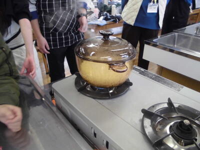 米を炊く 投稿: 学校管理者 (18:22) 2月3日(火)5年生が家庭科の調理実習で米を炊きました。 文化鍋で米を炊き、強火→中火→弱火→むらしの過程を観察しました。 少し焦げた班もありましたが、蒸らしていると米飯のなんともよい香りがしてきます。 「お米が甘い」などと感想を言い合いながら、おいしくいただきました。また、家庭などでも実践できるとよいですね。 Tweet -