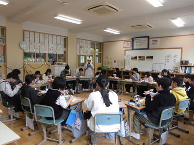 6年生小学校最後の給食 投稿: 学校管理者 (14:39) 3月13日(金)今日の給食メニューは、パンとラーメン、サラダです。 6年生は、大変お世話になった栄養士の先生と調理員さんに感謝を伝え、最後の給食をいただきました。 給食中に、栄養士の先生がお手紙を読んでくださいました。また調理員さんからもお手紙をいただきました。 たくさんの人に支えられ、成長しました。 Tweet -