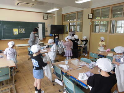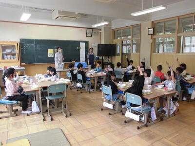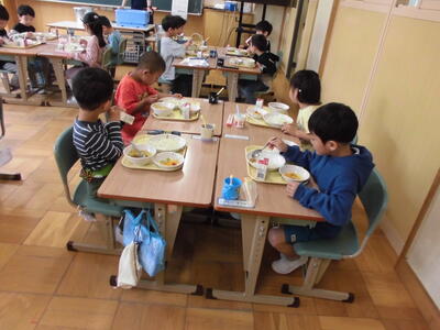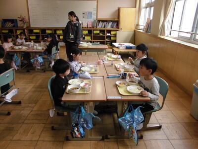 1年生初めての給食 投稿: 学校管理者 (18:05) 4月13日(月)今日は1年生が小学校初めての給食でした。給食当番の身支度も、白衣をたたむのも、自分の力で頑張りました。今日の献立は、カレーライスとフルーツポンチでしたが、みんなモリモリ食べて、栄養の先生もびっくりされていました。 何でも食べて、健康な体をつくりましょう。 Tweet -