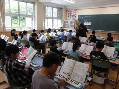鍵盤ハーモニカ 投稿: 学校管理者 (11:04) 4月27日(月)3年生が音楽の学習で、鍵盤ハーモニカの練習をしています。 「指またぎ」と「指くぐり」がなかなか難しいですが、頑張って練習して、できるようになってきました。 ドレミファソラソー♪ときれいな音色が響きました。 Tweet -
