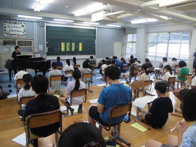 9月25日(木)5・6年生のきれいな歌声とリコーダーの音色が聞こえてきます。
